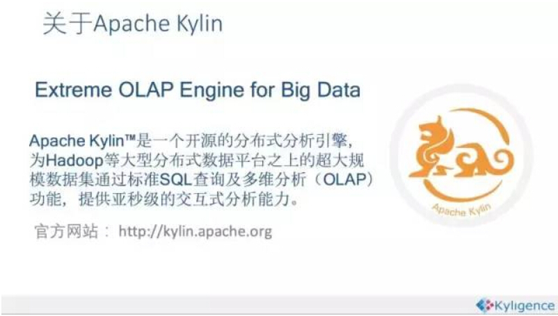 Apache Kylin,中文名麒(shen)麟(shou) 是Hadoop动物园的重要成员。Apache