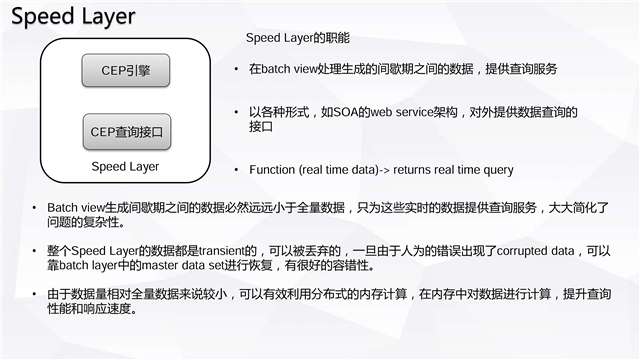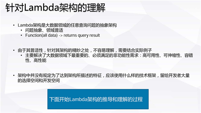 在学习和了解了解决业务的这三种查询方法之后,我们回过头来看CNTV的那个问题,就是做实时的查询,在此基础上利用OLTP及OLAP进行聚合分析,满足那些没有提到的更为复杂的功能需求时,这就是Lambda架构在企业大数据领域的实际应用。