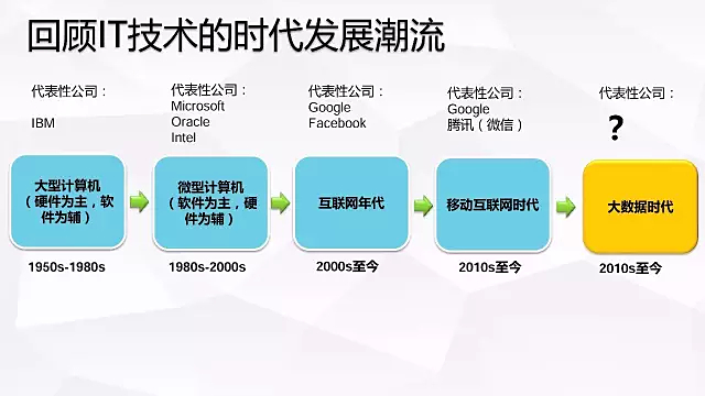 后来进入互联网时代,Google这样改变世界的企业应运而生,紧随其后的还有微信这样的移动互联网神器。如今,当计算世界进入到“大数据”时代,又会出现什么样的传奇呢?