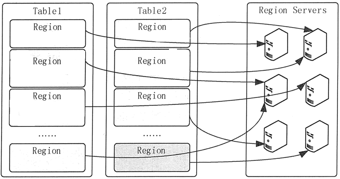 图 3 HBase的Region分布模式