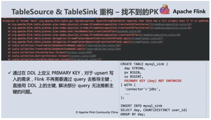 primary key / table factory 的诡异报错在新版本上都不复存在了。关于 Flink
