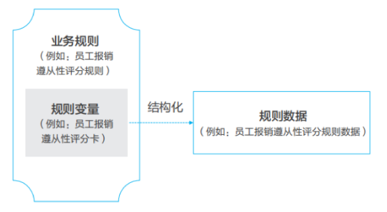 业务规则包含规则变量和变量之间的关系,规则数据主要描述规则的变量部分,是支撑业务规则的核心数据(如图