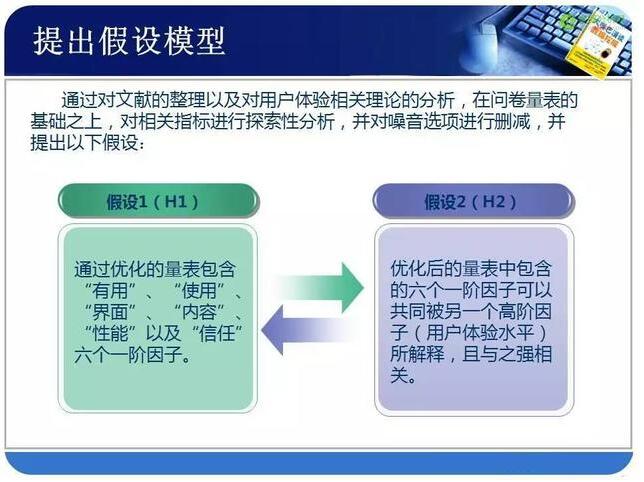 第一步构建了我们的模型,第二步要构建数据模型。需要什么样的数据来支撑我们的分析目标?我们的数据是通过调查问卷,获得那些指标数据。通过问卷调研的题目,对应我们的指标。获得数据支撑以后,构建模型。通过数学的方法,来解决我们的业务问题。我们的业务问题,回到分析目标,第一个目标构建用户体验的指标评测体系,将我们的产品用户体验分解成若干个可以被直接测量的部分。这一个目标隐藏了一个什么样的数学问题?比如一个食品特别好吃,“色香味俱全”,你为什么认为通过“色香味俱全”可以描述这个食品好吃。这个凭的是经验。经验是什么?凭经验得到的模型有可能对,也有可能错。在数学中就是假设检验的过程,需要用数据来验证。