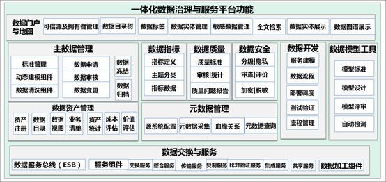 2)Êý¾ÝÖÎÀíÆ½Ì¨°üº¬Êý¾ÝÃÅ»§µØÍ¼¡¢Ö÷Êý¾Ý¹ÜÀí¡¢Êý¾ÝÖ¸±ê¡¢ÔªÊý¾Ý¹ÜÀí¡¢Êý¾ÝÄ£ÐÍ¡¢Êý¾Ý½»»»Óë·þÎñ¡¢Êý¾Ý×ʲú¹ÜÀí¡¢Êý¾Ý¿ª·¢¡¢Êý¾ÝÖÊÁ¿¹ÜÀí¡¢Êý¾Ý°²È«µÈ¹¤¾ß£¬Ìṩ¹æ·¶Í³Ò»µÄÊý¾ÝÖÎÀíºÍ·þÎñµÄƽ̨