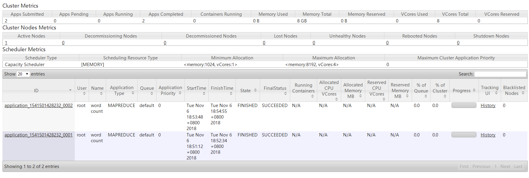 3.在YARN的可视化管理界面中可以查看任务的执行情况