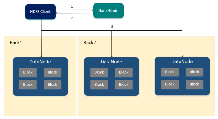 使用此策略可以保证对文件的访问能够优先在本机架下找到,并且如果整个机架上发生了异常也可以在另外的机架上找到该Block的备份。