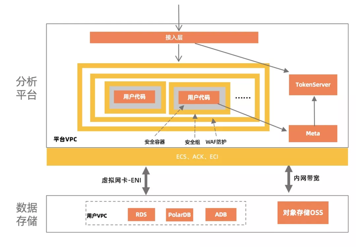 使用ENI技术访问自持VPC,跟在自持VPC内ECS上部署计算引擎访问自持VPC内数据一样,带宽同样是VPC内网带宽。