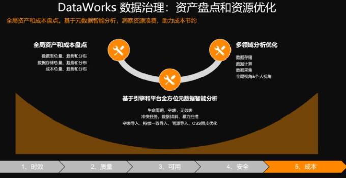 企业的资产随着数据量的逐渐的增大,那么企业对资产的管控也需要需要有越来越高的需求。DataWorks在基于以前数仓的基础上,也逐渐的把它拓展到刚才我们讲的整个的数据湖场景,它可以基于湖仓一体,逐步把整个企业全域的资源盘点和规划,优化给到客户,使成本得到非常精良的控制。
