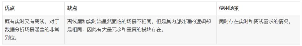 稳定,对于实时计算部分的计算成本可控,批量处理可以用晚上的时间来整体批量计算,这样把实时计算和离线计算高峰分开,这种架构支撑了数据行业的早期发展,但是它也有一些致命缺点,并在大数据3.0时代越来越不适应数据分析业务的需求。