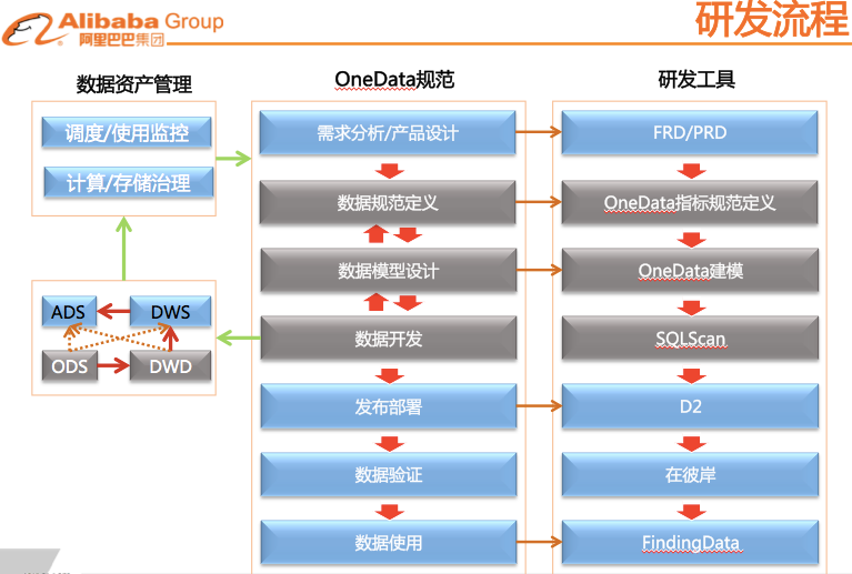 将OneData体系贯穿于整个研发流程的每个环节中,并通过研发工具来进行保障。