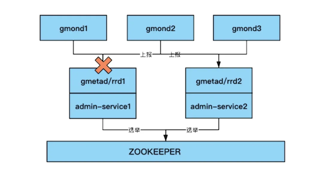 我们仔细研究了监控运维的高可用方案。对于gmetad/rrd这套监控数据汇总和时序数据库组件,我们可以在两个监控运维主节点部署两套独立的gmetad/rrd,解决单点问题。而admin-service组件,对于自动化运维动作,我们已经做到了幂等,可以进行重复操作,但是告警动作,不能重复一次。所以,我们不能简单地部署两个admin-service来实现高可用。