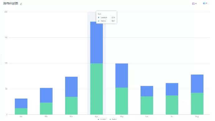 说明: 堆叠柱状图将每个柱子进行分割以显示相同类型下各个数据的大小情况;