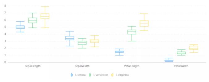 适用: 适用于展示一组数据分散情况,特别用于对几个样本的比较;
