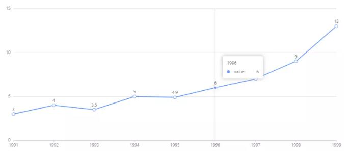说明: 折线图用于显示数据在一个连续的时间间隔或者时间跨度上的变化,它的特点是反映事物随时间或有序类别而变化的趋势;