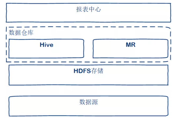 真正的从无到有搭建大数据平台,开发人员较少。可以直接使用CDH搭建起来你的大数据平台,选用Hive作为数据仓库的计算引擎。为什么这样选择呢?很多小公司没有足够的资金支撑大数据平台的建设,那么就会选择相对来说的比较稳定的开源组件,Hive发展了很多年,和磁盘的交互MR计算架构中的任务很少会出错。Hive对SQL支持的很好,开发人员很容易上手,而且维护成本很低。
