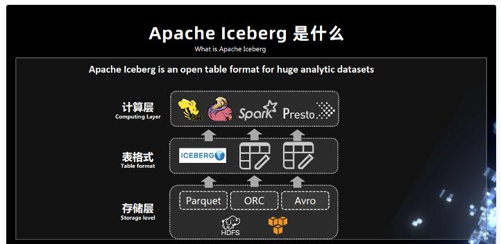 Iceberg 是为分析海量数据准备的,被定义为 table format,table format