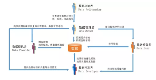 为了让组织架构中的各个角色 相互配合,各司其职, 还需要明确他们相应的职责, 让工作职责融入到日常的 数据资产管理和使用工作中。
