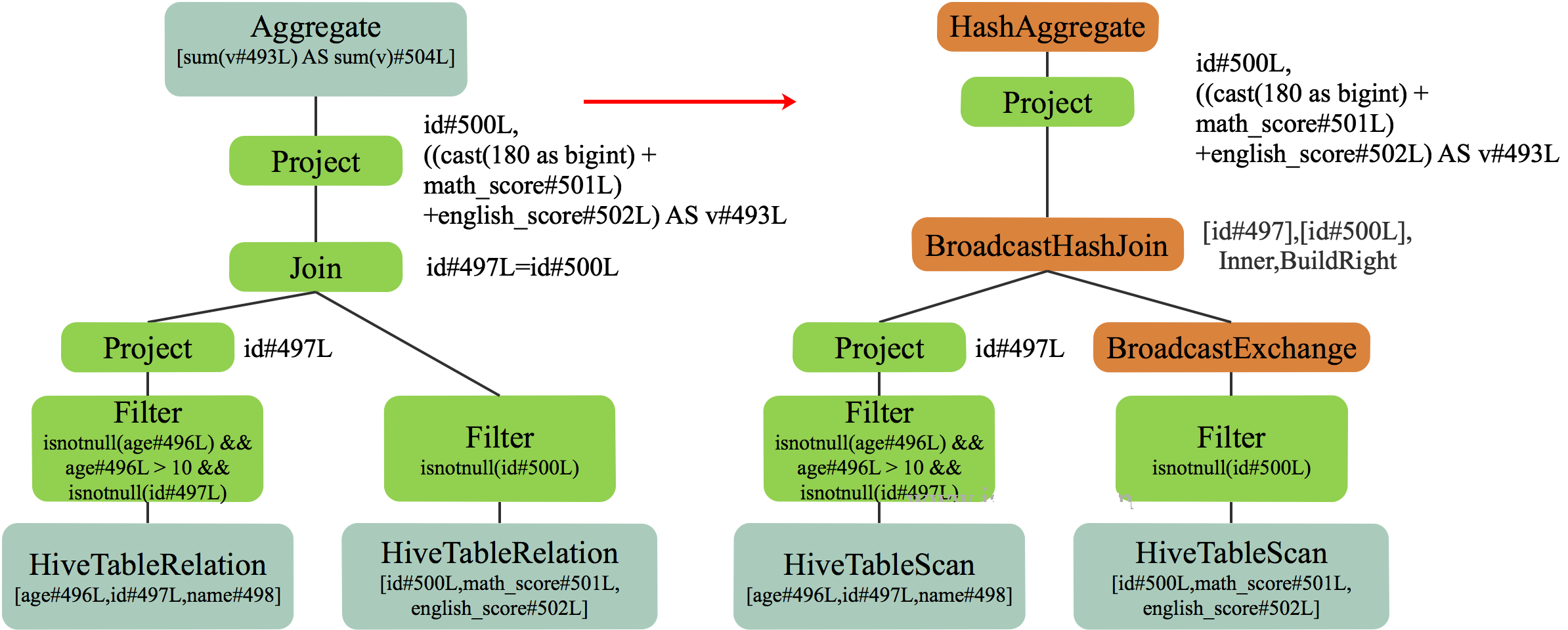 有了这些信息,已经可以直接将该 LogicalPlan 转换为 Physical Plan 进行执行。