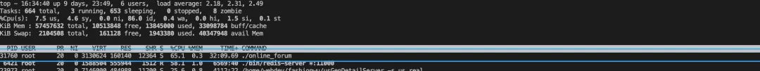 3、CPU 的使用 460%的使用率直接降到 65%: