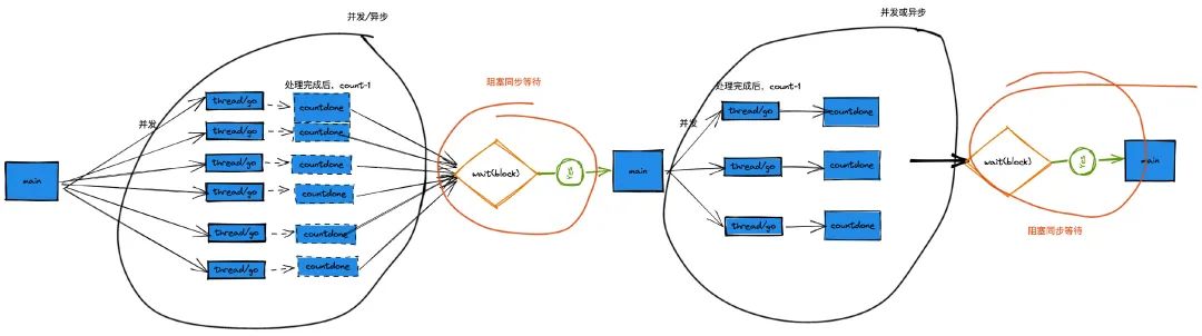 这种在主线中启动并发或者异步的处理,最终还是需要在主线程中使用 wait 来阻塞等等所以线程的结果处理完毕,这样看似提高的吞吐量,但是由于需要对并发线程或协程的结果进行汇总计算,这样就注定要把大量的结果集合存储到内存,然后进行后续的操作。这样的异步更像一种伪装异步。