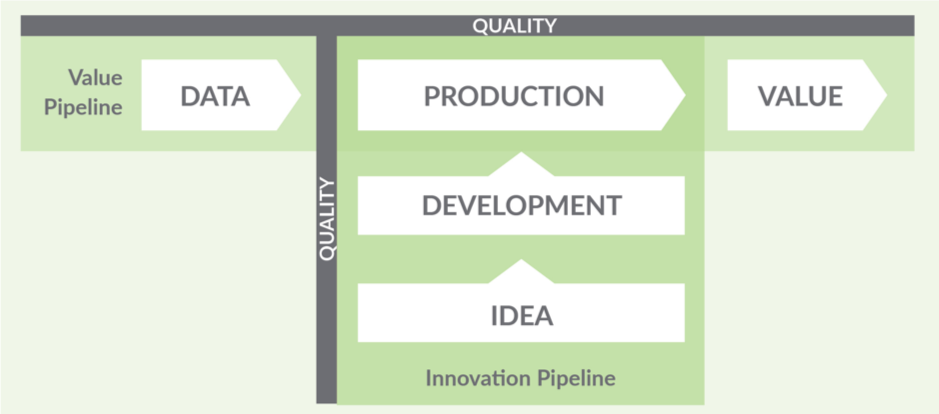 DataOps 开发过程比 DevOps 更具挑战性。图 4 显示了价值和创新管道的简化视图。