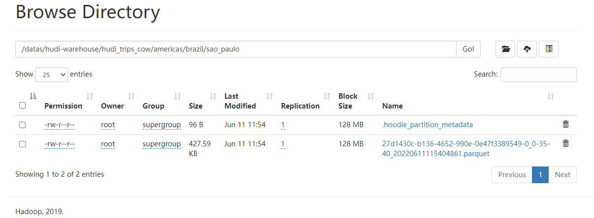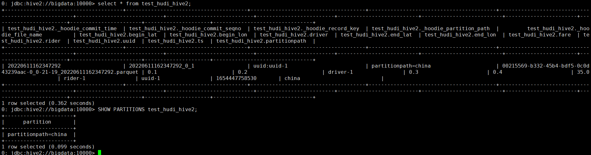 = 'COPY ON WRITE'是必须的。如果看到Hadoop中生成了parquet文件说明成功,则只需要手动创建Hive外部表和指定分区关联Hudi表即可。