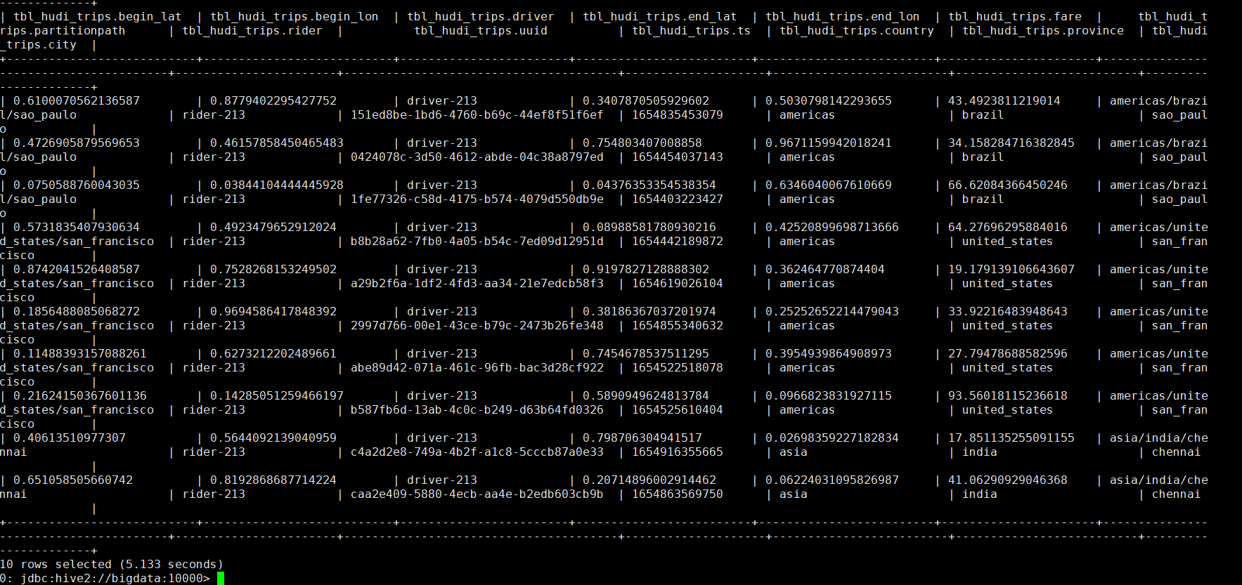 比原先保存到Hudi表中的数据多了5个字段,这些字段属于Hudi管理数据时使用的相关字段