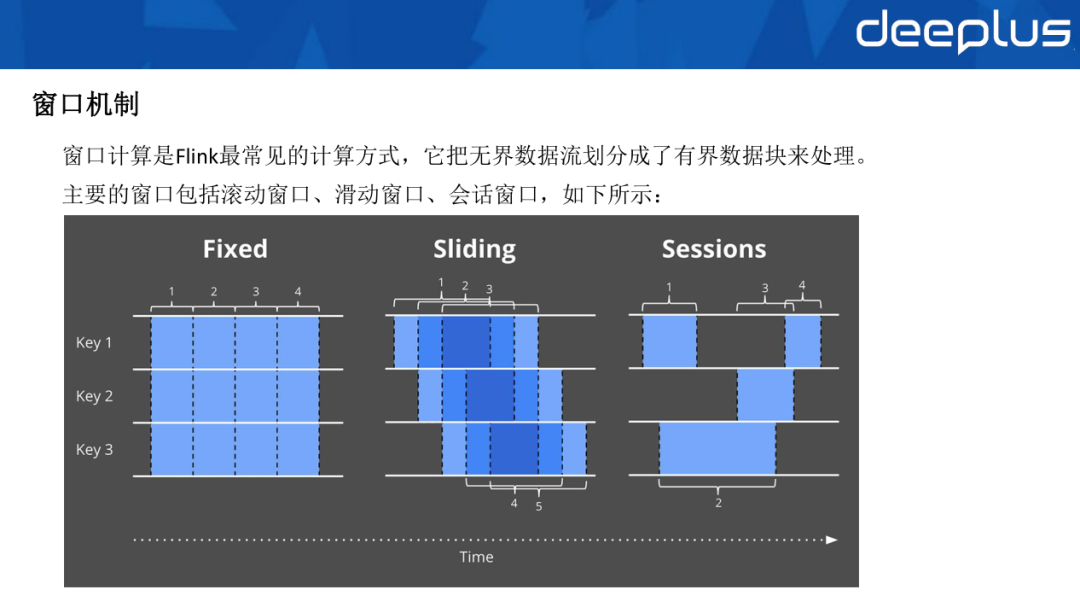 • Event Time:允许用户按照事件时间来处理数据,通过 watermark 来推动时间前进,这个后面还会详细介绍。主要是系统的时间和事件的时间。