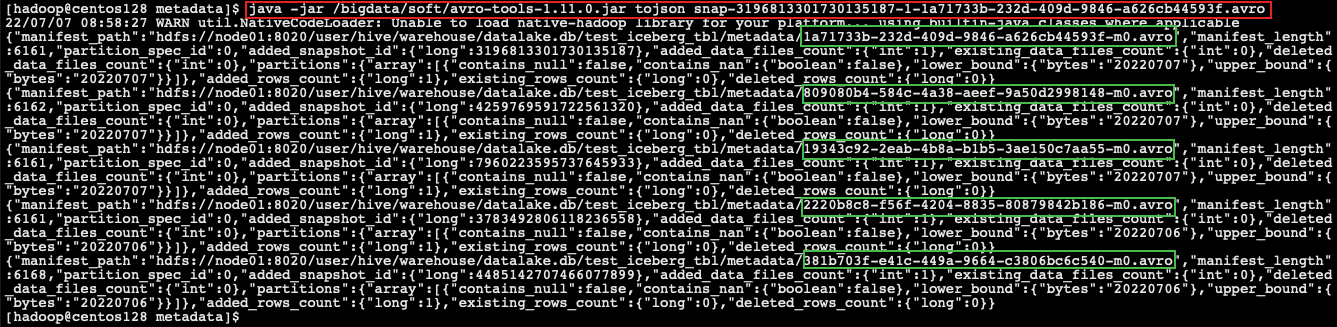 java -jar /bigdata/soft/avro-tools-1.11.0.jar tojson snap-*.avro