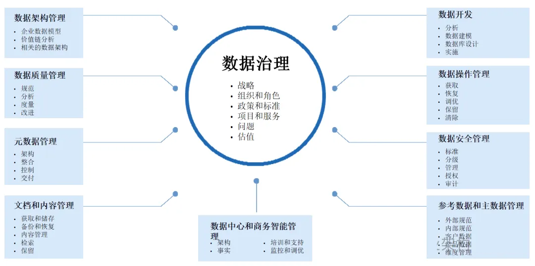 数据架构管理是数据治理的基础。架构是数据在企业中流动和整合的路线图,它决定了数据如何存储、共享和访问。良好的数据架构确保了数据的高效传输和处理,使业务需求得以准确和及时地满足。例如,在企业内,构建合理的数据架构可以有效支持跨部门的信息共享,同时避免信息孤岛的产生。