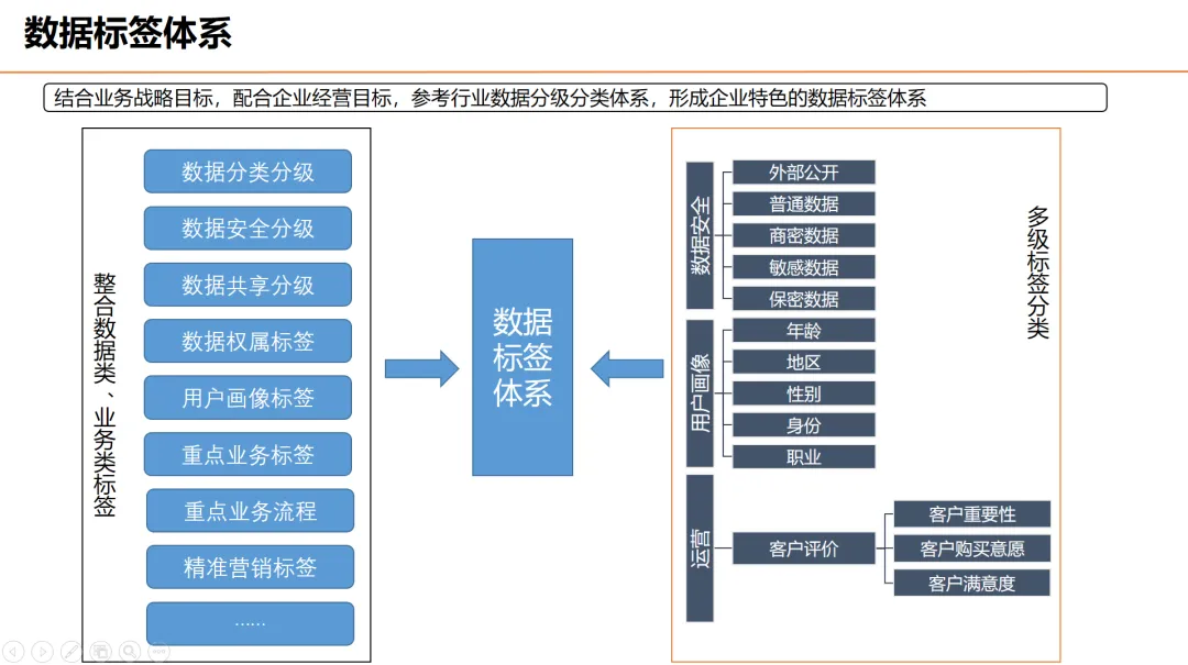 3、数据标签体系:数据分类分级、数据共享、数据认责、数据脱敏、数据质量、业务流程、业务实体