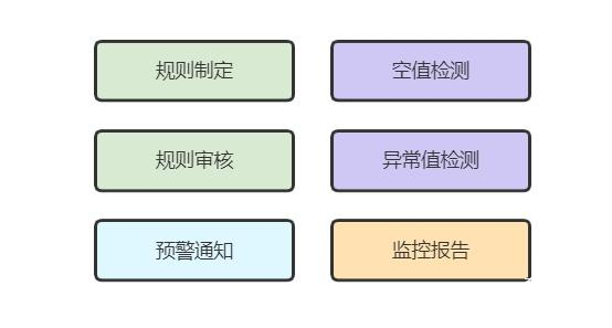 数据质量监控:提供事前、事中、事后的数据质量体系,支持数据质量监控规则配置、告警管理等功能