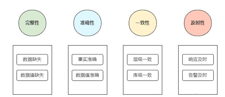 一般采用业内常用的标准来衡量数据质量的好坏:完整性、准确性、一致性和及时性。