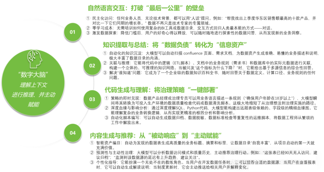 大模型为数据治理体系注入了一个能够理解上下文、进行推理、并主动赋能的“数字大脑”。这不仅仅是效率的提升,更是一种范式革命。