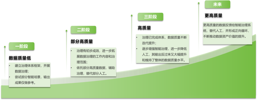 数据质量和智能数据治理之间存在着一种“ 飞轮效应 ”,两者之间正向相关。没有高质量的数据,智能无从谈起;而没有智能化的手段,高质量的数据也难以在高速变化的数据环境中持续保持。