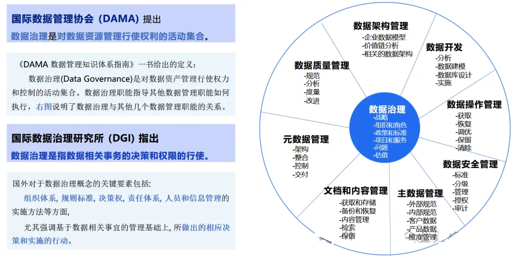 从国际与国内标准的角度来看,数据治理有三层核心定义: