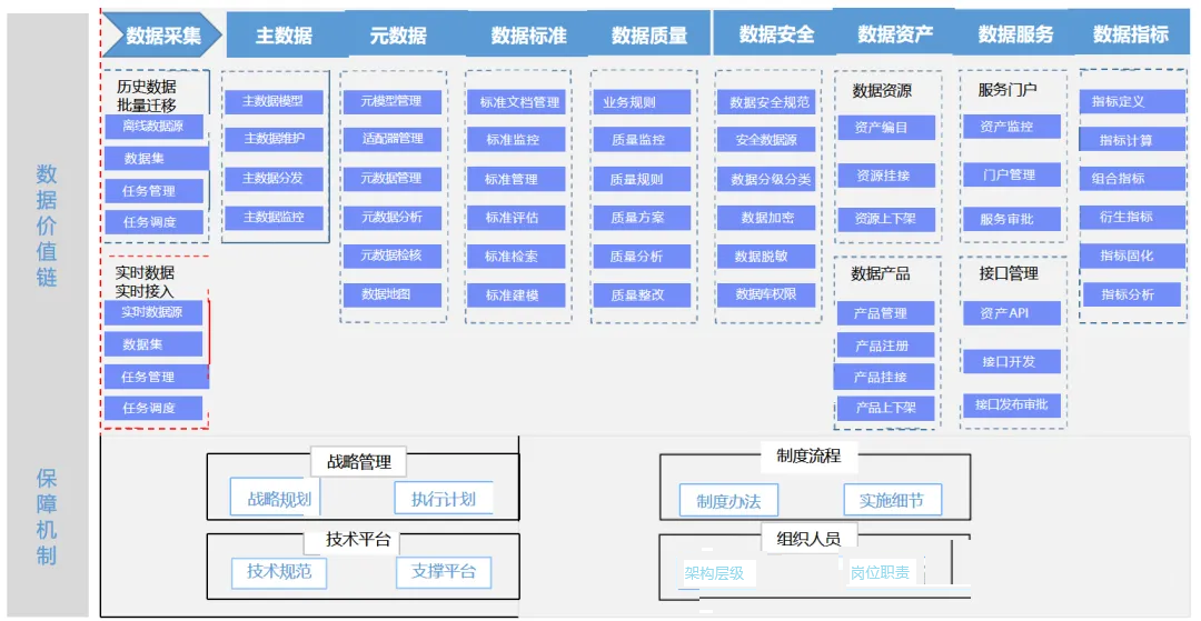 它统领主数据、元数据、数据标准、数据质量、安全与应用等子域的协同。
