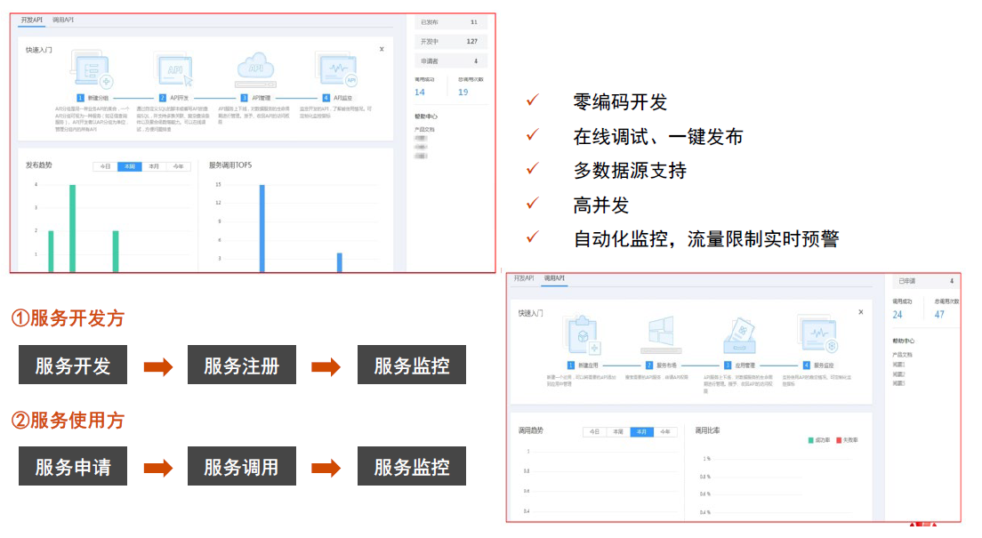 建立统一的数据开放服务平台,对公司内部提供数据开发与服务支撑,对社会和企业提供统一的对外数据开放服务,提供数据服务权限管理,隐私管理、数据服务开发与API封装,以及API使用统计等能力,使得数据价值得以充分释放。