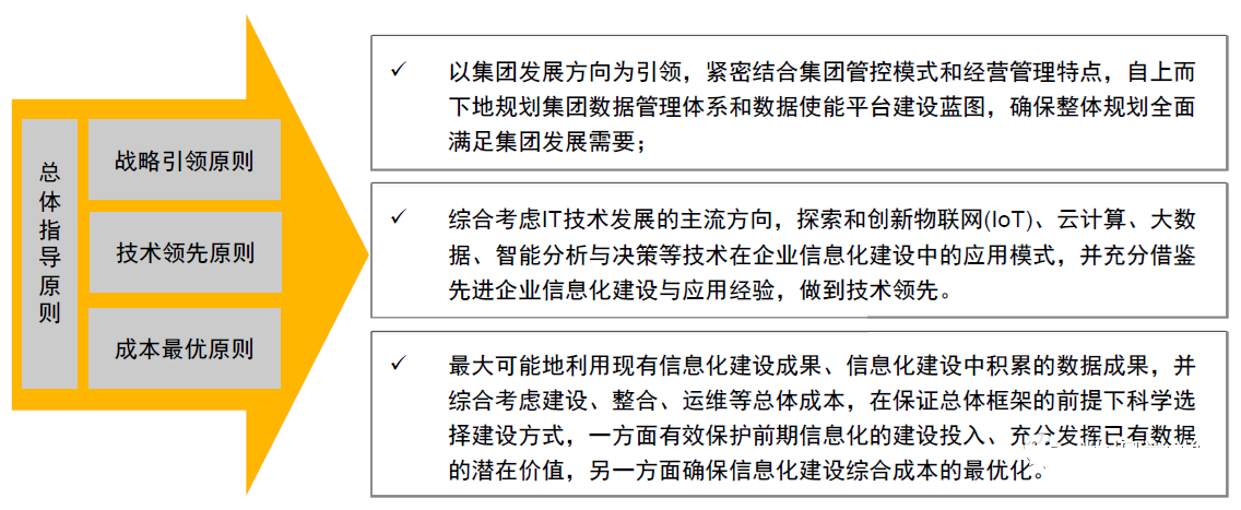 依据企业发展战略与业务发展需要,以数字化转型为指导,制定企业数据管理总体规划,明确数据管理战略和目标,优化数据管理体系,制定数据质量评估模型,识别数据使能平台建设需求与方案,指导企业数字化建设进程。