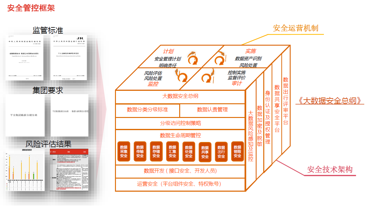 大数据安全体系为大数据安全的总体管控架构,包括管控框架、技术架构及运营机制。其主要作用为企业建立大数据安全的管控能力,并可用于安全能力评估,制订安全体系建设规划及路线图。