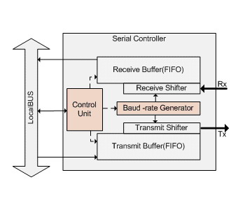 串行通讯接口是目前十分流行的通讯接口之一。由于其电气界面的简单性使其在计算机领域的应用相当的广泛。在这里提到的串行通讯接口主要是指UART(通用串行)和IRDA两种。通常的串行连接电气连接上有3wire和9wire两种。3wire的接线方式下定义了发送、接收和地三根连接。其用途就如名称一样分别用于发送、接收。下面是通常3wire连接的结构框图