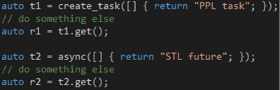 Studio 2012,使用时需要分别包含ppl.h和ppltask.h头文件。