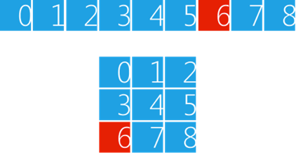 x 3的矩阵为例,如图2所示,vector对象会被分成三段,每段包含三个元素,第一段对应array_view对象的第一行,第二段对应第二行,如此类推。如果我们想访问矩阵的第2行第0列的元素,可以直接使用索引