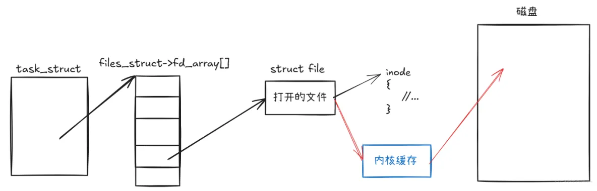 2)OS不需要通过inode才能看到文件的数据页(内核缓冲区),而是直接通过文件对象file就能查到。