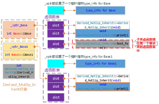 从单继承可以知道,派生类中只是扩充了基类的虚函数表。如果是多继承的话,又是如何扩充的?