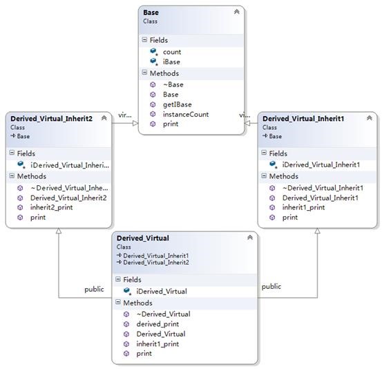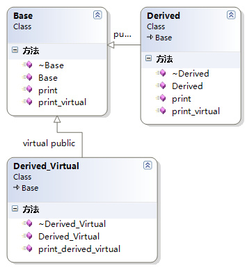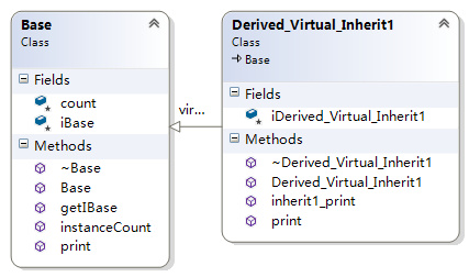 简单虚继承的2个类Base、Derived_Virtual_Inherit1的关系如下所示: