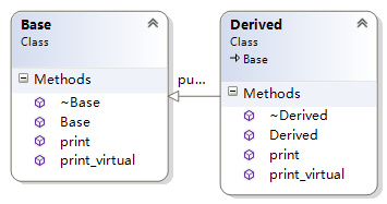 上面2个类,基类Base、派生类Derived中都包含下面2个方法: