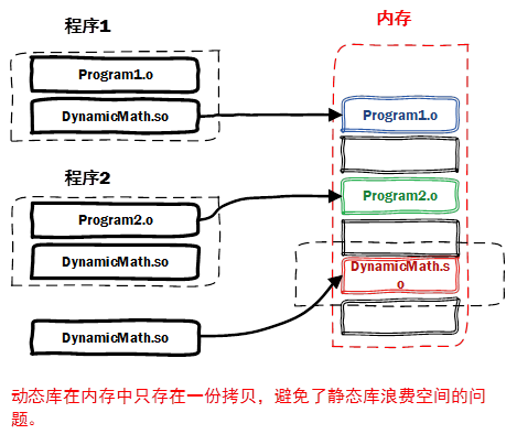 动态库在程序编译时并不会被连接到目标代码中,而是在程序运行是才被载入。不同的应用程序如果调用相同的库,那么在内存里只需要有一份该共享库的实例,规避了空间浪费问题。动态库在程序运行是才被载入,也解决了静态库对程序的更新、部署和发布页会带来麻烦。用户只需要更新动态库即可,增量更新。