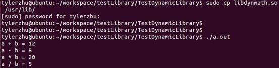我们将创建的动态库复制到/usr/lib下面,然后运行测试程序。