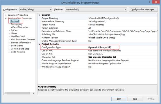 生成动态库需要设置工程属性,打开工程“属性面板”è”配置属性”è”常规”,配置类型选择动态库。